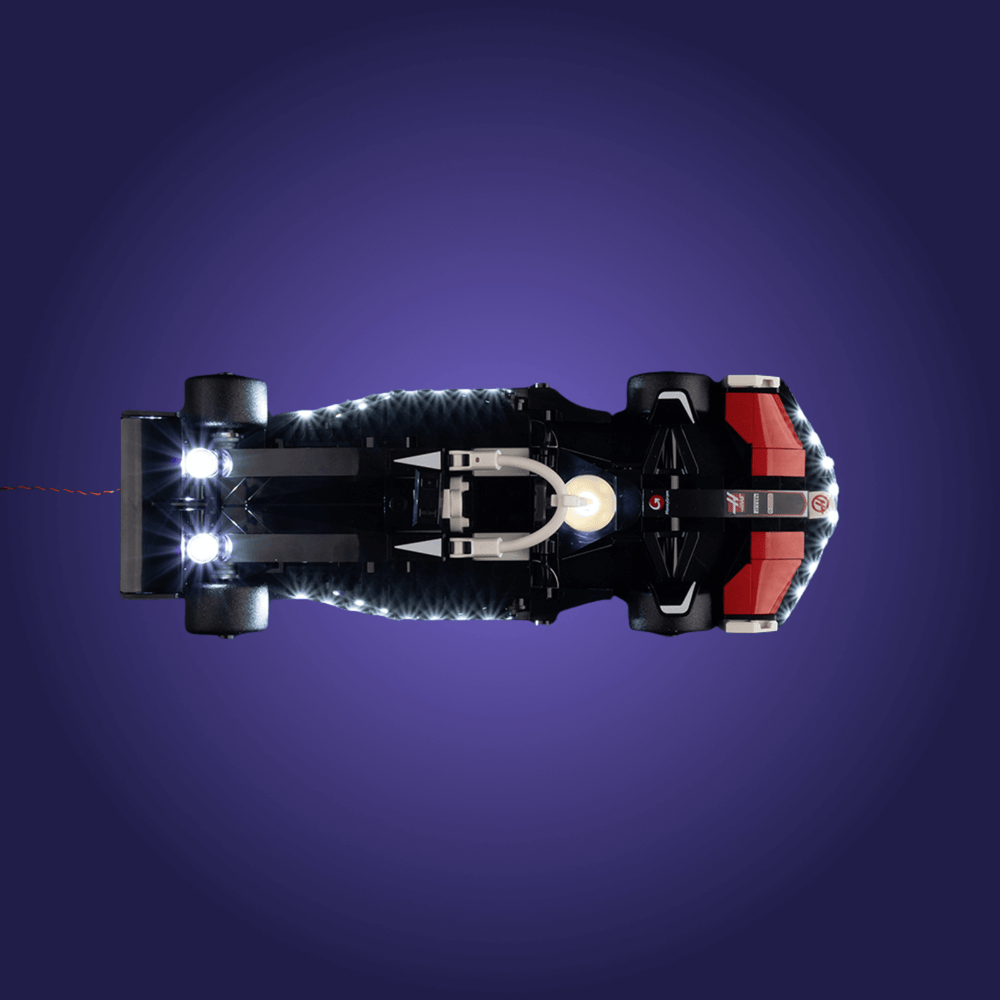 From Ferrari’s blazing SF-24 to the cool blues of Alpine and Williams, added LEDs sharpen every curve, panel line, and livery accent in race-day detail.
