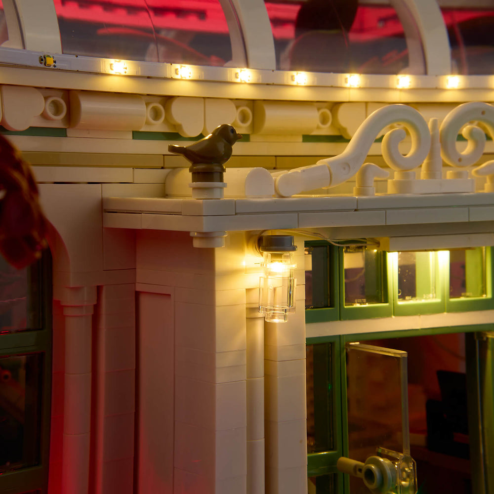 Connect with nature and create a calming atmosphere with the LEGO® The Botanical Garden (21353). Pair it with our light kit to illuminate this stunning Victorian-style glasshouse, transforming it into an elegant décor piece for your home or office.